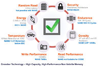 Due to its simple three-layer structure, Crossbar technology can be stacked in 3D, delivering multiple terabytes of storage on a single chip. Its simplicity, stackability and CMOS compatibility enable logic and memory to be easily integrated onto a single chip at the latest technology node, a capability not possible with other traditional or alternative non-volatile memory technologies.
