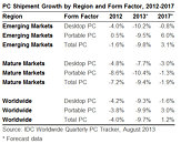 Worldwide PC shipments are now expected to fall by -9.7% in 2013, further deepening what is already the longest market contraction on record, according to the International Data Corporation (IDC) Worldwide Quarterly PC Tracker. The new forecast reflects not only a continued expansion of mobile device options at the expense of PCs, but also marked the cessation of emerging market growth that the industry had come to rely on in recent years. The market as a whole is expected to decline through at least 2014, with only single-digit modest growth from 2015 onward, and never regain the peak volumes last seen in 2011.