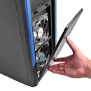 Moving on to the cooling area, the case features two 120 mm front intakes, with which you can make room for a 120 x 240 mm radiator by detaching the 3.5/2.5-inch cages; two 120 mm top exhausts, which can accommodate another radiator, a unique 120 mm conveyor behind the 5.25-inch drive cage, one 120 mm bottom intake, and a 120 mm rear exhaust. The perforated steel panels covering the front and top vents can be detached without any tools. Front panel connectivity includes two each of USB 3.0 and USB 2.0/1.1 ports, and HD audio jacks. The case is made of SECC steel and ABS plastic. It's available in black with deep blue, and white with hints of blue. DeepCool didn't announce pricing.