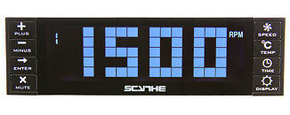 The desired information is displayed well structured on a 105 x 30 millimeter LC-Display. Users can adjust the brightness of the display in four steps from very bright to completely shut down. Kaze Chrono weights only 165 grams and can be fitted into a vacant 5,25 inch bay. One of the special highlights is the retro look of the display.