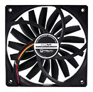 Taiwanese cooling company Prolimatech is now preparing the release of the Ultra Sleek Vortex 12, a 120 mm case fan that is claimed to offer 'superb performance' in a slim (15 mm) form factor. Pictured below, the fan has a Double Ball Bearing, 17 blades, a MTBF of 100,000 hours, an operating speed of 400 to 1300 RPM, and a maximum sound output of 17 dBA.