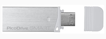 The PicoDrive Smart measures 37.3 x 12.3 x 4.6 mm, it comes with a one-year warranty and is selling in 8 GB (1,980 yen / ~ 19 USD), 16 GB (2,980 yen / ~ 28 USD) and 32 GB (4,980 yen / ~ 47 USD) capacities.