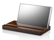 Today, LaCie, the premium brand from Seagate Technology plc unveiled the LaCie Mirror portable hard drive wholly encased in scratch resistant Corning Gorilla Glass. This unique device is at once both a functional 1 TB hard drive and a striking piece of decor. The LaCie Mirror hard drive will adorn any desktop as it sits in its base made of a single piece of ebony wood from Makassar. This new signature piece for LaCie has been designed in collaboration with the acclaimed French designer, Pauline Deltour.