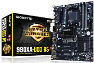 Storage connectivity on the 990XA-UD3 R5 include six SATA 6 Gb/s ports. The board's onboard audio solution features a Realtek ALC1150 CODEC, offering 115 dBA SNR, audio-grade electrolytic capacitors on the audio circuit, a TI-made headphones amplifier with support for headphones impedance as high as 600Ω, and PCB ground-layer isolation. Also on offer are a gigabit Ethernet connection, driven by a Realtek-made controller, four USB 3.0 ports (two on the rear panel, two by headers), and PS/2 mouse/keyboard combo port. The board is driven by AMI UEFI BIOS, and supports Windows 8 SecureBoot and FastBoot. Expect this board to be priced around US $130.