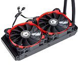 HUNTER DUET is equipped with a 240 mm radiator mounted with a pair of SF-12025 high static pressure fans. Fan speed is PWM controlled from 800 to 2000RPM, pushing max. airflow of 84.5CFM each. On four corners are mounted with rubber dampeners to absorb operating vibration.