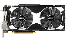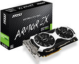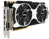 MSI released the GeForce GTX 980 Ti Armor2X OC graphics card (model: V323). This is MSI's second cost-effective GTX 980 Ti offering, besides the GTX 980 Ti OC V1, which the company plans to offer at near-reference prices, despite a factory-overclock. Unlike the OC V1, this card features a cost-effective dual-fan cooling solution that sticks to the "Krait" color scheme of contrasting black and white; with a black PCB that lacks a back-plate. On offer, is a factory overclock of 1178 MHz core, 1279 MHz GPU Boost, and an untouched 7010 MHz (GDDR5-effective) memory. The card features the usual 6 GB of GDDR5 memory across a 384-bit wide memory bus, draws power from a combination of 8-pin and 6-pin PCIe power connectors, and offers display outputs of one each DVI, HDMI 2.0, and DisplayPort 1.2 connectors.