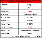 The R9 380X will be based on the same exact silicon as the R9 380, and the same exact compact package, with pins for 256-bit wide GDDR5 memory interface; and not the 384-bit interface that the "Tonga" aka "Antigua" silicon physically supports. All 32 Graphics CoreNext compute units (CUs) will be enabled, yielding 2,048 stream processors. The chip will also feature 128 TMUs and 32 ROPs. The core could be clocked as high as 1100 MHz, and memory at 6.00 GHz (GDDR5-effective). 4 GB will be the standard memory amount. There won't be a reference design, and AMD AIB partners will be ready with custom-design products from day-one.